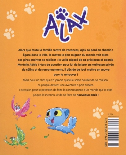 Ajax est de retour dans sa première Petite Grande Chaventure ! Alors que toute la famille rentre de vacances, Ajax se perd en chemin ! Egaré dans la ville, le matou le plus mignon du monde voit alors ses pires craintes se réaliser : le voilà séparé de sa précieuse et adorée Mortelle Adèle ! Hors de question pour lui de laisser sa maîtresse privée de câlins et de ronronnements, il décide de tout mettre en oeuvre pour la retrouver ! Mais pour un chat qui n'a jamais quitté le salon douillet de sa maison, ce périple devient une aventure à part entière. L'occasion pour le petit félin de faire la connaissance d'un monde qui lui était jusque-là inconnu, et de se faire de nouveaux amis !