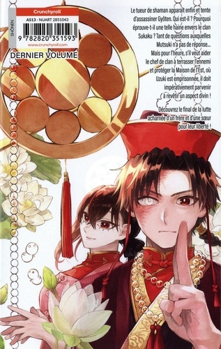 Le tueur de shaman apparaît enfin tente d'assassiner Gyôten. Qui est-il ? Pourquoi éprouve-t-il une telle haine envers le clan Sukaku ? Tant de questions auxquelles Mutsuki n'a pas de réponse... Mais pour l'heure, s'il veut aider le chef de clan à terrasser l'ennemi et protéger la Maison de l'Est, au Uzuki est emprisonnée, il doit impérativement parvenir a revêtir un aspect divin ! Découvrez le final de la lutte acharnée d'un frère et d'une soeur pour leur liberté !