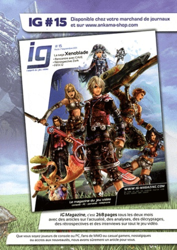 IG Magazine, c'est 268 pages tous les deux mois avec des articles sur l'actualité, des analyses, des décryptages, des rétrospectives et des interviews sur tout le jeu vidéo. Que vous soyez joueurs de console ou PC, fans de MMO ou casual gamers, nostalgiques ou accros aux nouveautés, nous avons sûrement un article pour vous.