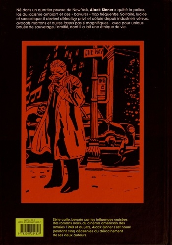 Privé newyorkais inspiré des archétypes de l'âge d'or du roman et du film noir américain, Alack Sinner transcende ces influences pour toucher au coeur de l'humain. L'expérience de l'exil de Munoz et Sampayo a donné naissance à une série au long cours (près de 30 ans ! ), dans laquelle le héros vieillit (fait très rare en BD). Enquêtes et filatures sont l'occasion de présenter tout un microcosme social, entre code de conduite et corruption, déracinement et amour. Une oeuvre fleuve et chorale, qui a inspirée de nombreux auteurs du 9e Art à travers le monde. Cet intégrale contient : - Conversation avec Joe - L'Affaire Webster - L'Affaire Filmore - Viet Blues - La vie n'est pas une bande dessinée, baby - Città oscura - Constancio y Manolo - Souvenir - Rencontres