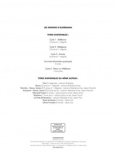 L'extraordinaire périple de Kim débute dans cette saga, fondatrice de ce qui deviendra "Les Mondes d'Aldébaran", du nom de la planète sur laquelle vivent notre héroïne et ses compagnons d'aventure. Un grand classique de la SF plébiscité par les lecteurs. Cette intégrale rassemble les 5 tomes du cycle "Aldébaran".