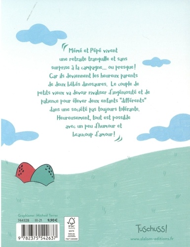 Deux (adorables) dinosaures débarquent au poulailler ! Mémé et Pépé vivent une retraite tranquille à la campagne. Un quotidien sans surprise... ou presque ! Car ils sont les heureux parents de deux bébés pas comme les autres. Alors que les petits dinosaures apprennent les règles de vie élémentaires avec plus ou moins de succès, le couple de petits vieux va devoir rivaliser d'ingéniosité, de générosité et de patience pour élever deux enfants " différents " dans une société pas toujours tolérante. Heureusement, tout est possible avec un peu d'humour et beaucoup d'amour !