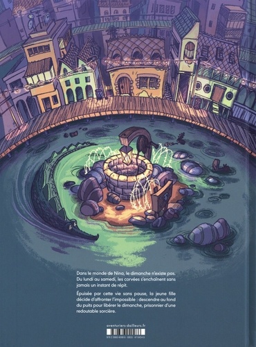 Dans le monde de Nina, le dimanche n'existe pas. Du lundi au samedi, les corvées s'enchaînent sans jamais un instant de répit. Epuisée par cette vie sans pause, la jeune fille décide d'affronter l'impossible : descendre au fond du puits pour libérer le dimanche, prisonnier d'une redoutable sorcière.