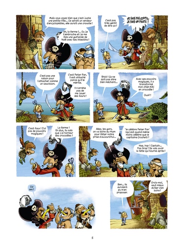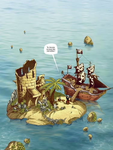 Ça y est, Alice a quitté le pays des singes. Mais elle n'est pas rentrée chez elle pour autant ! La voilà rendue au " pays de Nulle part ", celui du célèbre capitaine Crochet aux prises avec un Peter Pan qui a la manie de transformer tous ceux qu'il croise en crocodiles. Crochet et son équipage embarquent Alice avec eux pour récupérer l'antidote à cette fâcheuse transformation. Mais à peine sont-ils partis qu'un terrible tourbillon précipite leur navire tout droit... au pays des singes ! Voici la suite des aventures délirantes de la petite Alice, où Tébo détourne joyeusement les célèbres figures de la littérature jeunesse. En résulte une galerie de personnages loufoques, tous plus déjantés les uns que les autres, prenant vie grâce au dessin impeccable d'un Keramidas au sommet de sa forme !