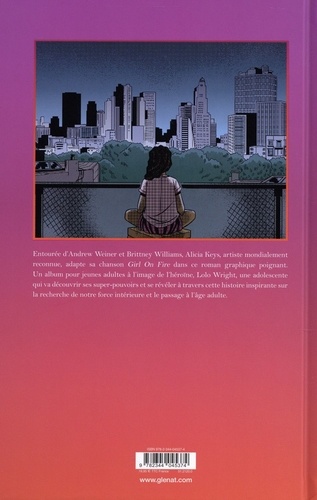 Révèle les pouvoirs qui sont en toi ... Lolo Wright a toujours pensé qu'elle n'était qu'une jeune fille ordinaire de 14 ans confrontée à des tracas ordinaires : son frère, James, a des difficultés scolaires ; l'entreprise de son père est constamment au bord du gouffre ; quant à sa mère... elle est partie il y a longtemps. Mais le quotidien de Lolo bascule le jour où un policier braque son arme sur James par erreur alors que les deux ados rentrent des courses. Lolo ne réalise pas encore, mais elle vient de jeter le policier à terre par la simple force de son esprit. Peu à peu, elle va prendre conscience de ses capacités télékinésiques ! Le problème, c'est que les secrets de Lolo ne vont pas rester longtemps secrets. Skin, le dealer qui veut prendre le contrôle du quartier entend parler de ces pouvoirs et est prêt à tout pour avoir Lolo dans son équipe. Mais Lolo refuse qu'on se serve d'elle pour nuire aux autres. Elle va devoir faire preuve de courage pour défendre ce qui est juste, surtout après le retour soudain de sa mère, qui va bouleverser son monde. Bientôt Lolo va commencer à s'affirmer au lycée et apprendre à contrôler ses pouvoirs pour faire face à Skin et sa bande... Entourée d'Andrew Weiner et Williams Brittney, Alicia Keys artiste mondialement reconnue, adapte sa chanson " Girl On Fire " dans ce roman graphique poignant. Un album pour jeunes adultes à l'image de l'héroïne, Lolo Wright, une adolescente qui va découvrir ses super-pouvoirs et se révéler à travers cette histoire inspirante sur la recherche de notre force intérieure et le passage à l'âge adulte, et qui traite aussi bien de la question de l'identité raciale que du féminisme.