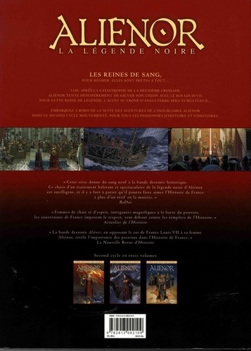 Les Reines de sang, pour régner. elles sont prêtes a tout... 1150. Après la catastrophe de la deuxième Croisade, Aliénor tente désespérément de sauver son union avec le roi Louis VII. Pour cette reine de légende, l'accès au trône d'Angleterre sera tumultueux... Embarquez à bord de la suite des aventures de l'inoubliable Aliénor dans ce second cycle mouvementé, pour tous les passionnés d'Histoire et d'Histoires.