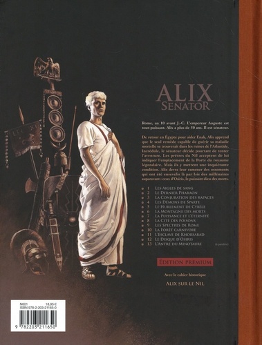 Dans la cité sacrée d'Abydos, une lueur tranche dans l'obscurité, Enak vient d'ouvrir une boîte contenant les ossements de son fils. Soudain, il est assommé. De mystérieux prêtres sont présents à son réveil. Ils promettent à Enak un remède au mal qui le ronge. En échange, il devra retrouver la cité des Atlantes, ces hommes légendaires au savoir immense. Rejoint par Alix et Tefnout, ils se lancent dans la quête de la mythique Atlantide. Ensemble, ils devront remonter jusqu'aux sources du Nil pour trouver les portes de la cité engloutie. Cette édition est accompagnée d'un cahier historique "Alix sur le Nil"