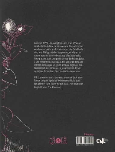 Confessions sur une jeunesse amoureuse agitée, cinq ans après les événements décrits dans Trop n'est pas Assez (Prix Révélation Angoulême 2011 et Prix Artémisia 2011). Autriche, 1989. Ulli Lust a vingt-deux ans et vit désormais à Vienne où elle tente de faire carrière comme illustratrice tout en alternant petits boulots et aide sociale. Elle revient tous les week-ends chez ses parents, dans la campagne autrichienne, pour passer du temps avec son jeune fils, Philipp, qu'elle a eu à dix-sept ans suite à une rencontre sans lendemain. Ulli vit avec Georg, acteur dans une petite troupe de théâtre, limite dépressif et beaucoup plus âgé qu'elle. Suite à une rencontre dans un parc, elle s'engage dans une relation avec Kim, un jeune nigérien récemment arrivé en Autriche et une intense passion charnelle va se nouer entre eux. Mais Ulli tient à continuer sa relation avec Georg, tout en étant avec Kim... Ce nouvel opus autobiographique d'Ulli Lust est une réussite totale. On y retrouve son sens de la narration, le talent de cet auteur pour mettre en scène sa jeunesse, et sa capacité à transmettre aux lecteurs les émotions, les passions, les peurs qu'elle a elle-même ressenties il y a des années. Programmé pour une parution en octobre 2017 par la prestigieuse maison d'édition allemande Suhrkamp, Alors que j'essayais d'être quelqu'un de bien sortira dès le mois suivant en France.