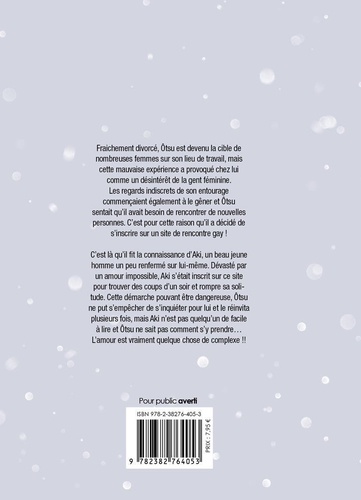 Fraichement divorcé, Otsu est devenu la cible de nombreuses femmes sur son lieu de travail, mais cette mauvaise expérience a provoqué chez lui comme un désintérêt de la gent féminine. Les regards indiscrets de son entourage commençaient également à le gêner et Otsu sentait qu'il avait besoin de rencontrer de nouvelles personnes. C'est pour cette raison qu'il a décidé de s'inscrire sur un site de rencontre gay ! C'est là qu'il fit la connaissance d'Aki, un beau jeune homme un peu renfermé sur lui-même. Dévasté par un amour impossible, Aki s'était inscrit sur ce site pour trouver des coups d'un soir et rompre sa solitude. Cette démarche pouvant être dangereuse, Otsu ne put s'empêcher de s'inquiéter pour lui et le réinvita plusieurs fois, mais Aki n'est pas quelqu'un de facile à lire et Otsu ne sait pas comment s'y prendre... L'amour est vraiment quelque chose de complexe !!