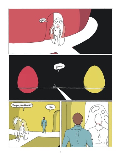 En entrant dans ces oeufs on intègre la machine, alors on se dit plutôt qu'on quitte la terre pour un autre lieu. En fait, on quitte notre condition.