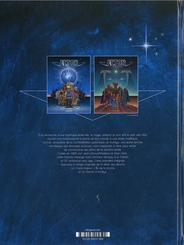 Cette première intégrale regroupe les tomes 1 à 3 du cycle du Cristal Majeur. "Altor" est une série imaginée par Jean Giraud/Moebius, ici scénariste pour le dessinateur Marc Bati, sortie en 1985 dans 'Pilote Mensuel'. Altor, petit elfe aventureux, évolue dans un univers au départ très inspiré de Tolkien, avant de glisser complètement vers la SF. Un mélange très emblématique des années 1980, porté par un dessin à ligne épurée moebiusienne, et agrémenté d'un cahier graphique.
