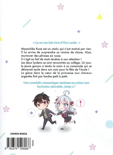 "Ca ne me fait rien d'être seule". Masachika Kuze est un otaku qui n'est motivé par rien. Il lui arrive de surprendre sa voisine de classe, Alya, murmurer des phrases en russe. Il s'agit en fait de mots tendres à son attention ! Les deux lycéens se sont rencontrés au collège. Un jour, le jeune garçon a tendu la main à sa camarade qui se démenait seule dans son coin pour la fête de l'école ! La glace dans le coeur de la princesse aux cheveux argentés finit par fondre petit à petit. Une comédie romantique mettant en scène une lycéenne adorable, tome 2 !
