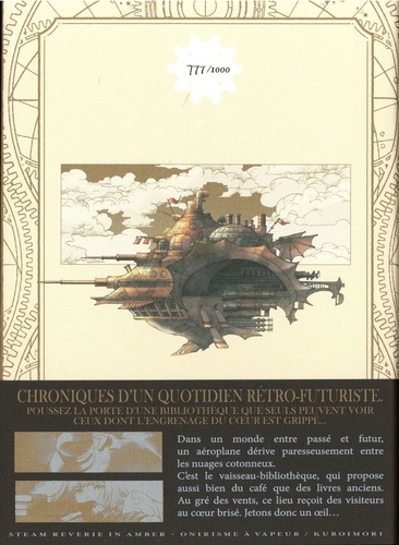 Dans un monde entre passé et futur, un aéroplane dérive paresseusement entre les nuages cotonneux. C'est le vaisseau-bibliothèque, qui propose aussi bien du café que des livres anciens. Au gré des vents, ce lieu reçoit des visiteurs au coeur brisé. Jetons donc un oeil...