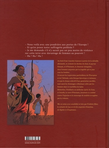Au fond d'une tranchée boueuse à portée de la mitraille allemande, se croisent les destins de Jean, le paysan français, et d'Ousmane, le chasseur sénégalais, deux hommes emportés par la tragédie qui se joue sous les bombes. A travers les trajectoires particulières de l'Européen et de l'Africain, cette fresque historique et intimiste évoque le drame collectif d'une génération sacrifiée, mais aussi les dommages collatéraux subis par les femmes dans ce tourbillon de haine. Hubertine, l'étudiante en médecine éprise de Jean, et Ismaïla, la soeur d'Ousmane, incarnent ce combat contre l'injustice et le mensonge de sociétés aveuglées par la violence. Mis en scène avec sensibilité et brio par Frédéric Blier, le scénario de Lax se révèle empreint d'émotion, de dignité et d'espérance.