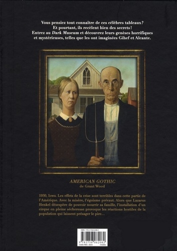 Pour entrer au Dark Museum, une toile doit provoquer chez son observateur une impression morbide que seule une origine mystérieuse semble pouvoir expliquer. L'austère American Gothic de Wood y tient une place de choix... 1930, Iowa. Les effets de la crise sont terribles dans cette partie de l'Amérique. Avec la misère, l'égoïsme prévaut. L'installation d'un cirque en pleine sécheresse finit d'échauffer les esprits. Alors que Lazarus Henkel désespère de pouvoir nourrir sa famille, un accident de voiture se produit près de sa ferme. L'odeur du corps du conducteur en train de brûler lui inspire une macabre solution...