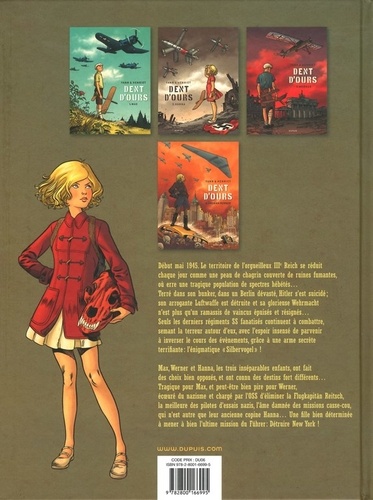 Début mai 1945. Le territoire de l'orgueilleux IIIe Reich se réduit chaque jour comme une peau de chagrin couverte de ruines fumantes, où erre une tragique population de spectres hébétés... Terré dans son bunker, dans un Berlin dévasté, Hitler s'est suicidé ; son arrogante Luftwaffe est détruite et sa glorieuse Wehrmacht n'est plus qu'un ramassis de vaincus épuisés et résignés... Seuls les derniers régiments SS fanatisés continuent à combattre, semant la terreur autour d'eux, avec l'espoir insensé de parvenir à inverser le cours des évènements, grâce à une arme secrète terrifiante : l'énigmatique "Silbervogel" ! Max, Werner et Hanna, les trois inséparables enfants, ont fait des choix bien opposés, et ont connu des destins fort différents... Tragique pour Max, et peut-être bien pire pour Werner, écoeuré du nazisme et chargé par l'OSS d'éliminer la Flugkapitän Reitsch, la meilleure des pilotes d'essais nazis, l'âme damnée des missions casse-cou, qui n'est autre que leur ancienne copine Hanna... Une fille bien déterminée à mener à bien l'ultime mission du Führer : Détruire New York !