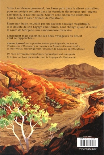 Suite à un drame personnel, Jan Bauer part dans le désert australien, pour un périple solitaire dans les étendues désertiques qui longent Larrapinta, la Rivière Salée. Quatre cent cinquante kilomètres à pied, dans le coeur brûlant de l'Australie. Etape par étape, envoûté par un paysage sauvage magnifique, il se déleste de son bagage émotionnel. Tout change quand il croise la route de Morgane, une randonneuse française. Lentement mais sûrement, les deux voyageurs du désert vont se rapprocher...