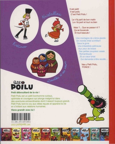 Il est petit II est poilu C'est Petit Poilu ! Le v'là parti de bon matin Le v'là parti et tout va bien Mais ?... Que se passe-t-il ? Ca se bouscule Et tout bascule ! Une montagne de crame glacée Un monde irréel scintillant Sous le givre Une irrésistible patineuse Aux yeux de braise Des petites poupées russes Romantiques Et un coeur brisé Qui demande à être recollé.. Vas-y Petit Poilu, FONCE !