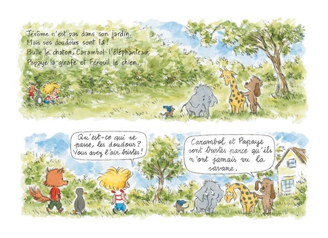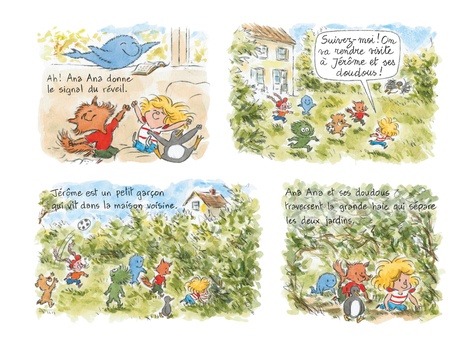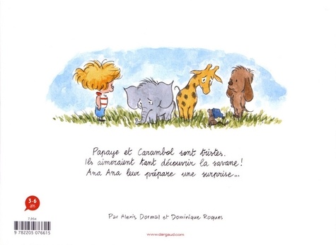 Ana Ana et ses doudous rendent visite à Jérôme, le petit garçon qui vit dans la maison voisine. Il n'est pas dans son jardin mais ses doudous, si ! L'éléphanteau Carambol et la girafe Papaye se lamentent : ils n'ont jamais vu la savane. Ana Ana et ses doudous leur préparent une belle surprise !