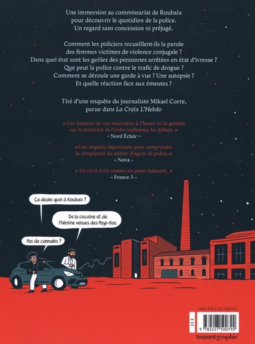 Une année d'immersion au commissariat de Roubaix, par le journaliste Mikael Corre. Comment se déroule une garde à vue ? Dans quel état sont les geôles des personnes arrêtées en état d'ivresse ? Que peut la police contre le trafic de drogue ? Quelle est la part du manque de formation (initiale ou continue), du manque de moyens, de la misère sociale, des procédures inadaptées, de nos attentes contradictoires dans les dysfonctionnements de la police ? Le journaliste Mikael Corre et le dessinateur Bouqé nous donnent à voir et à entendre la police du quotidien. Pas celle qu'on aimerait, pas celle qu'on dénonce, mais celle qu'elle est. Une enquête en BD qui changera forcément votre regard sur la police.