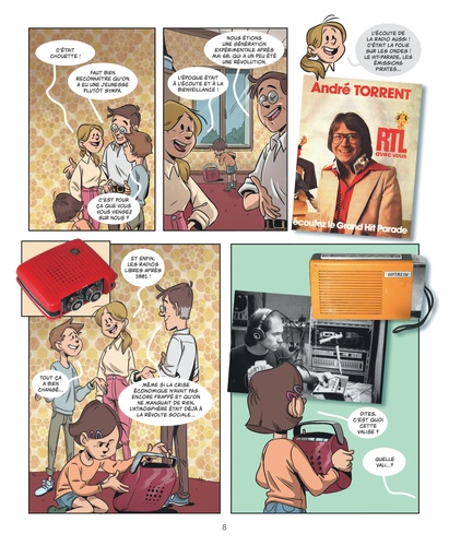 Enfant de 1966 ! Vous avez grandi et vous êtes devenu adulte, mais vous avez précieusement gardé vos souvenirs de jeunesse dans votre coeur. Albums photos, jouets fétiches, livres favoris ou vêtements d'un autre temps : vos cartons regorgent de trésors soigneusement conservés qui attendent la première occasion pour être redécouverts ou transmis à la génération suivante. Retrouvez l'ambiance des années 70 et 80 avec les familles de la collection "Mes Souvenirs en BD" : à l'occasion d'un vide-grenier, d'un nettoyage de printemps ou d'une visite aux grands-parents, une enfant et un adolescent d'aujourd'hui partagent avec leurs aînés les événements, jeux, modes ou saveurs qui ont marqué leur jeunesse. Ce retour dans le temps permet aux deux générations de se rapprocher en s'amusant et de comparer leurs points de vue avec humour. A travers de nombreuses iconographies d'époque, ces personnages attachants nés en 1966 vous feront revivre avec bonheur et nostalgie vos meilleurs souvenirs... en BD !