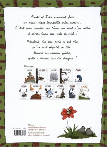 Anuki et Isha veulent passer un moment entre copains : s'asseoir sous un arbre, regarder le paysage et déguster leur pot de miel. C'est sans compter sur Nuna qui est en proie à une terrible fringale... Ni une ni deux, la jeune fille dévore les réserves de ses amis, avant de s'adonner à une délicieuse sieste digestive. Frustrés, les deux garçons n'ont plus qu'un seul objectif en tête : trouver un nouveau goûter, quitte à braver tous les dangers !