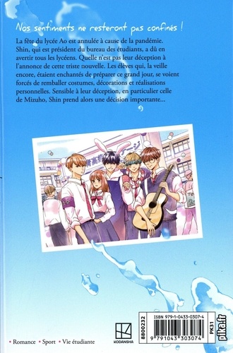 La fête du lycée Ao est annulée à cause de la pandémie. Shin, qui est président du bureau des étudiants, a dû en avertir tous les lycéens. Quelle n'est pas leur déception à l'annonce de cette triste nouvelle. Les élèves qui, la veille encore, étaient enchantés de préparer ce grand jour, se voient forcés de remballer costumes, décorations et réalisations personnelles. Sensible à leur déception, en particulier celle de Mizuho, Shin prend alors une décision importante...
