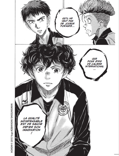 Ashito Aoi est revenu chez lui, à Ehime, après la détection du Tokyo City Esperion. Alors que le verdict tarde à se faire connaître, Noriko, sa mère qui l'a élevé seule, adopte une attitude inhabituelle... Ashito a-t-il réussi les tests ? Qu'a donc sa mère sur le coeur ? Quelle surprise lui a-t-elle préparée ? Le destin du jeune garçon va être bouleversé à tout jamais. Ecrit et dessiné par Yûgo Kobayashi et édité depuis 2015 par Shogakukan au Japon, Ao Ashi a remporté la 65e édition des Manga Awards en 2019, une des récompenses les plus prestigieuses du monde de la bande dessinée dans l'archipel. A mi-chemin entre le shônen sur le terrain et le seinen en dehors, Ao Ashi fait d'ores et déjà partie du cercle très fermé des plus grands mangas de sport, grâce à l'écriture incisive et hyper dynamique de son auteur, et aux tempéraments hauts en couleur de sa galerie de personnages, à commencer par Ashito, son inoubliable héros. Suivez, tome après tome, de son île natale jusqu'aux sommets du Tokyo Esperion FC, les aventures d'Ashito Aoi, numéro 10 surdoué et facétieux, destiné à révolutionner le football japonais. "Ao Ashi, le manga de foot qu'il faut lire absolument ! " BFMTV "Probablement l'une des meilleures séries de foot du moment ! " BoDoï "Un manga de foot très réaliste". Europe 1 "Une oeuvre fluide dans sa narration qui s'articule autour d'un joueur fougueux et attachant". Le Figaro