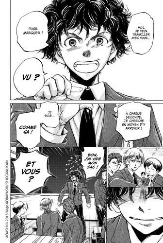 Après un premier entraînement très difficile avec les U18 du Tokyo City Esperion, Ashito doit vite comprendre ce qu'il manque à son jeu s'il veut un jour accomplir son rêve et devenir professionnel. C'est au contact de l'équipe A que le jeune natif d'Ehime va débuter une progression fulgurante et affiner sa qualité première : la vision de jeu. Ecrit et dessiné par Yûgo Kobayashi et édité depuis 2015 par Shogakukan au Japon, Ao Ashi a remporté la 65e édition des Manga Awards en 2019, une des récompenses les plus prestigieuses du monde de la bande dessinée dans l'archipel. A mi-chemin entre le shônen sur le terrain et le seinen en dehors, Ao Ashi fait d'ores et déjà partie du cercle très fermé des plus grands mangas de sport, grâce à l'écriture incisive et hyper dynamique de son auteur, et aux tempéraments hauts en couleur de sa galerie de personnages, à commencer par Ashito, son inoubliable héros. Au moment où l'actualité foot sera au plus haut (le championnat d'Europe de football se tiendra du 11 juin au 11 juillet 2021), suivez, tome après tome, de son île natale jusqu'aux sommets du Tokyo Esperion FC, les aventures d'Ashito Aoi, numéro 10 surdoué et facétieux, destiné à révolutionner le football japonais.