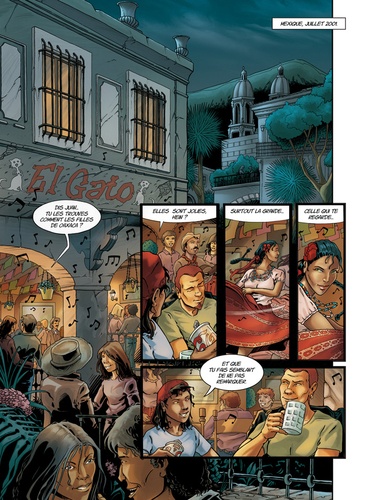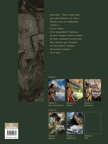 Le cycle II Comme annoncé précédemment, la seconde trilogie de la série Terra Incognita aborde à nouveau le thème du voyage dans le temps vécu par un homme perdu sur une planète hostile. Une planète qui se trouve être la Terre. Mais une terre dominée par les peuples précolombiens. En effet, au cours d'un voyage au Mexique, et suite à un concours de circonstances exceptionnelles, Jean-Baptiste Le Naec va effectuer un saut de cinq siècles dans le passé. D'abord épouvanté par cette perspective impossible, il va ensuite progressivement l'admettre afin de mettre en oeuvre un projet insensé : changer le cours de l'histoire. Le destin de Jean-Baptiste va, de plus, être partagé entre plusieurs femmes ; deux des trois volumes du cycle ayant pour titre le prénom de l'une des trois héroïnes. T4 : Aoura Jean-Baptiste Le Naëc possède tous les signes extérieurs du bonheur. Mais cet idéaliste invétéré décide un beau jour de tout quitter pour partir à la recherche de cette paix intérieure qui le fuit depuis toujours. Sa quête le conduit à Oaxaca, ville du Sud Mexicain, où il fait la rencontre de personnages singuliers qui lui apportent aide et assistance tout en l'entraînant dans une aventure incroyable : Jesus, petit gavroche de Oaxaca, guide les pas et le coeur du voyageur dans les méandres de la vieille ville. Par son intermédiaire, Jean-Baptiste rencontre Aoura, superbe danseuse aztèque, et Jorge, vieil indien maya adepte des anciennes croyances. Ce dernier fait le récit d'un voyage extraordinaire. Cinquante ans plus tôt, lors d'un violent affrontement, le vieil homme soutient qu'il "propulsa" son contremaître à l'époque précolombienne. Le voyage ayant pu s'effectuer grâce à une étrange fusion : un sentiment de haine d'une puissance extrême émis par Jorge, associé au pouvoir d'une représentation de Chaac, le dieu de la pluie des anciens Mayas. Quelques temps après, Jean-Baptiste est agressé par deux hommes au service de Luiz, le frère d'Aoura. Sous une couverture d'honnête chiclero, Luiz est en fait un redoutable trafiquant d'oeuvres d'art précolombiennes. Instigateur, quelques jours auparavant, du "vol du siècle" au musée anthropologique de Mexico, il espère utiliser le sac à dos de Jean-Baptiste comme "valise diplomatique" afin de sortir du pays le fameux masque de jade du roi Pakal. Il fait pression sur sa soeur et se sert de l'amour qu'elle porte au voyageur pour parvenir à ses fins. Au cours d'un voyage en bus vers le site archéologique de Palenque, et suite à un contrôle de l'armée, Jean-Baptiste découvre involontairement le masque volé dissimulé dans ses bagages. L'explication inéluctable qui s'en suit avec Aoura est interrompue par l'arrivée de Luiz. Une course poursuite s'engage. Le temple de la grande pyramide du site archéologique protège le couple de la fureur du trafiquant et abrite leur première nuit d'amour. La passion amoureuse de la jeune femme, alliée au pouvoir du masque de jade, projette Jean-Baptiste cinq siècles dans le passé à l'époque du grand empire Aztèque. Quarante ans plus tôt et parallèlement aux aventures vécues par Jean-Baptiste, Jesus, Aoura et Luiz, l'archéologue Alberto Ruz et son assistant Pablo descendent lentement au coeur de la pyramide de Palenque, à la recherche du tombeau du prince maya Pakal. Leur découverte bouleversera les connaissances sur les civilisations précolombiennes et révélera au monde entier le voyage extraordinaire de Jean-Baptiste Le Naëc.