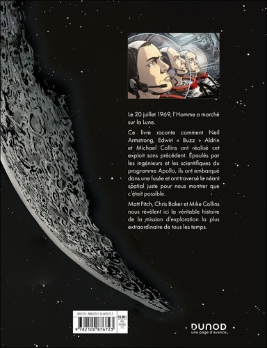 Le 21 juillet 1969, un humain a marché sur la Lune. Ce livre raconte comment Neil Armstrong, Edwin " Buzz" Aldrin et Michael Collins, ont réalisé cet exploit sans précédent. Epaulés par les ingénieurs et les scientifiques du programme Apollo, ils ont embarqué dans une fusée et ont traversé le néant spatial juste pour nous montrer que c'était possible. Matt Fitch, Chris Baker et Mike Collins nous révèlent ici la véritable histoire de la mission d'exploration la plus extraordinaire de tous les temps.