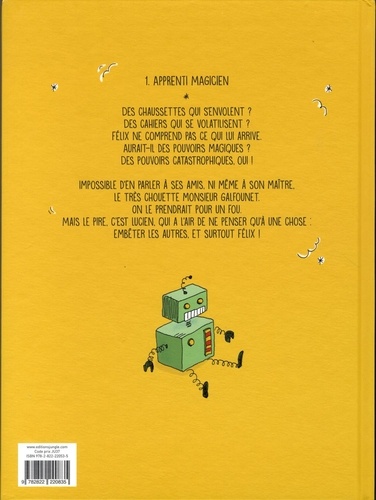 Des chaussettes qui s'envolent ? Des cahiers qui se volatilisent ? Félix ne comprend pas ce qui lui arrive. Aurait-il des pouvoirs magiques ? Des pouvoirs catastrophiques, oui ! Impossible d'en parler à ses amis, ni même à son maître, le très chouette Monsieur Galfounet. On le prendrait pour un fou. Mais le pire, c'est Lucien, qui a l'air de ne penser qu'à une chose : embêter les autres, et surtout Félix !
