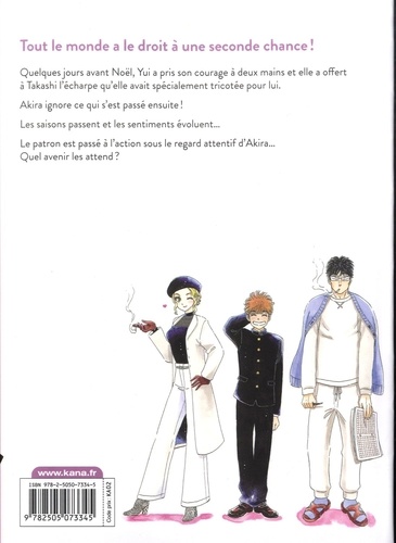 Tout le monde a le droit à une seconde chance ! Quelques jours avant Noël, Yui a pris son courage à deux mains et elle a offert à Takashi l'écharpe qu'elle avait spécialement tricotée pour lui. Akira ignore ce qui s'est passé ensuite ! Les saisons passent et les sentiments évoluent... Le patron est passé à l'action sous le regard attentif d'Akira... Quel avenir les attend ?