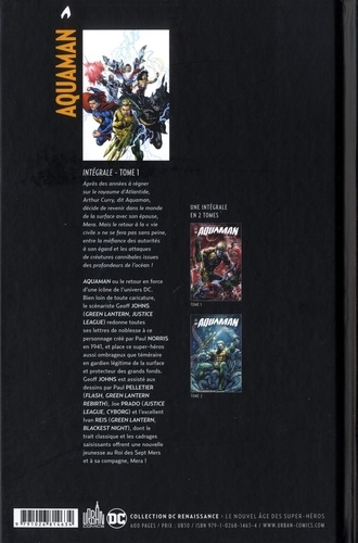 Après des années à régner sur le royaume d'Atlantide, Arthur Curry, dit Aquaman, décide de revenir dans le monde de la surface avec son épouse, Mera. Mais le retour à la " vie civile " ne se fera pas sans peine, entre la méfiance des autorités à son égard et les attaques de créatures cannibales issues des profondeurs de l'océan ! Aquaman ou le retour en force d'une icône de l'univers DC. Bien loin de toute caricature, le scénariste Geoff Johns (Green Lantern, Justice League) redonne toutes ses lettres de noblesse à ce personnage créé par Paul Norris en 1941, et place ce super-héros aussi ombrageux que téméraire en gardien légitime de la surface et protecteur des grands fonds. Geoff Johns est assisté aux dessins par Paul Pelletier (Flash, Green Lantern Rebirth), Joe Prado (Justice League, Cyborg) et l'excellent Ivan Reis (Green Lantern, Blackest Night), dont le trait classique et les cadrages saisissants offrent une nouvelle jeunesse au Roi des Sept Mers et à sa compagne, Mera !