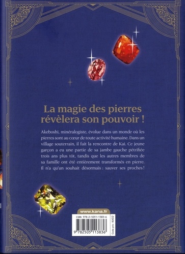 Akeboshi, minéralogiste, évolue dans un monde où les pierres sont au coeur de toute activité humaine. Dans un village souterrain, il fait la rencontre de Kai. Ce jeune garçon a eu une partie de sa jambe gauche pétrifiée trois ans plus tôt, tandis que les autres membres de sa famille ont été entièrement transformés en pierre. Il n'a qu'un souhait désormais : sauver ses proches !