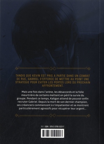Tandis que Kévin est pris à partie dans un combat de rue, Gabriel s'efforce de mettre au point une stratégie pour éviter les pertes lors du prochain affrontement. Mais une fois dans l'arène, les désaccords et la folie meurtrière de certains mettent en péril la survie du groupe. Pendant ce temps, Kaligan attend de pouvoir enfin recruter Gabriel. Depuis la mort de son dernier champion, ses créanciers commencent à s'impatienter et se montrent particulièrement agressifs pour récupérer leur argent... Le Chef Otaku et Clarity continuent de développer leur manga aux intersections de la culture coréenne et japonaise. L'univers qu'ils inventent prend de l'ampleur et pousse les personnages dans leurs retranchements.