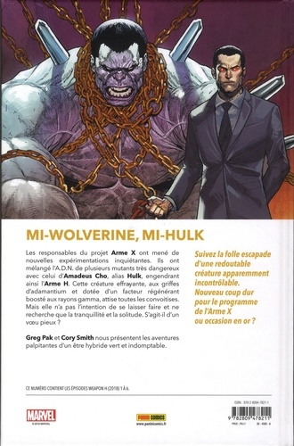 Les responsables du projet Anne X ont mené de nouvelles expérimentations inquiétantes. Ils ont mélangé l'A.D.N. de plusieurs mutants très dangereux avec celui d'Amadeus Cho, alias Hulk, engendrant ainsi l'Arme H. Cette créature effrayante, aux griffes d'adamantium et dotée d'un facteur régénérant boosté aux rayons gamma, attise toutes les convoitises. Mais elle n'a pas l'intention de se laisser faire et ne recherche que la tranquillité et la solitude. S'agit-il d'un voeu pieux ? Suivez la folle escapade d'une redoutable créature apparemment incontrôlable. Nouveau coup dur pour le programme de l'Arme X ou occasion en or ? Greg Pak et Cory Smith nous présentent les aventures palpitantes d'un étre hybride vert et indomptable.