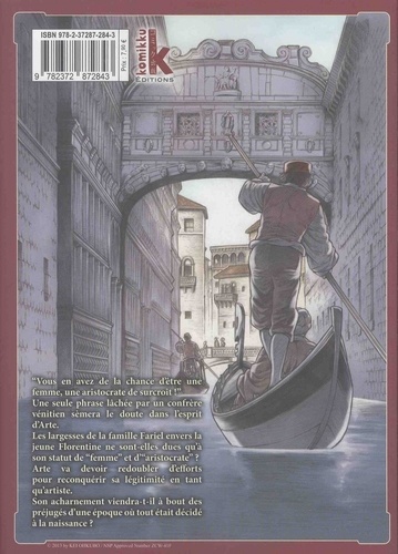 "Vous en avez de la chance d'être une femme, une aristocrate de surcroît !" Une seule phrase lâchée par un confrère vénitien sèmera le doute dans l'esprit d'Arte. Les largesses de la famille Fariel envers la jeune Florentine ne sont-elles dues qu'à son statut de "femme" et d'aristocrate" ? Arte va devoir redoubler d'efforts pour reconquérir sa légitimité en tant qu'artiste. Son acharnement viendra-t-il à bout des préjugés d'une époque où tout était décidé à la naissance ?