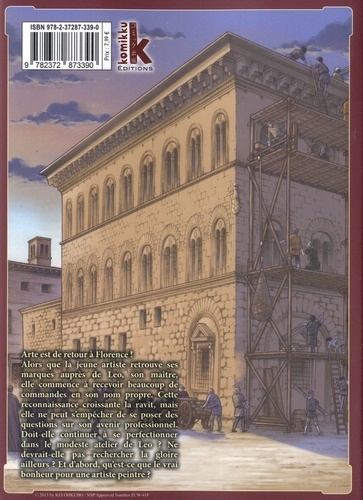 La relève de BRIDE STORIES prend place en pleine Renaissance à Florence ! Florence. Début du XVIe siècle. Dans ce berceau de la Renaissance, qui vit l'art s'épanouir dans toute sa splendeur, une jeune aristocrate prénommée Arte rêve de devenir artiste peintre et aspire à entrer en apprentissage dans un des nombreux ateliers de la ville... Hélas ! Cette époque de foisonnement culturel était aussi celle de la misogynie, et il n'était pas concevable qu'une jeune femme ambitionne de vivre de son art et de son travail. Les nombreux obstacles qui se dresseront sur le chemin d'Arte auront-ils raison de la folle énergie de cette aristo déjantée ?