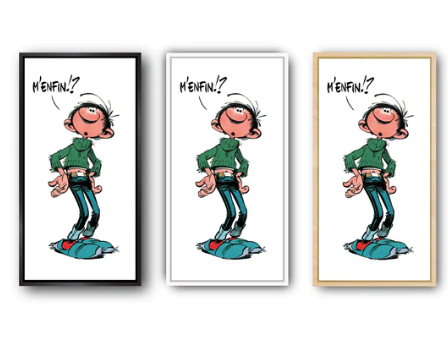 Onze Amerikaanse baklijsten in "L"-profiel worden met de hand in Frankrijk gemaakt van massief hout. Deze frames bieden een elegante esthetiek zonder af te leiden van het kunstwerk. Ze zijn verkrijgbaar in verschillende afwerkingen om te passen bij de sfeer van stripverhalen.