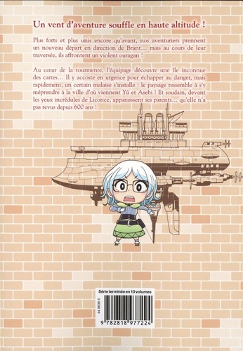 Embarquez pour une aventure palpitante, fraîche comme la brise, virevoltante comme un grand shônen ! Plus forts et plus unis encore qu'avant, nos aventuriers prennent un nouveau départ en direction de Brant... mais au cours de leur traversée, ils affrontent un violent ouragan ! Au coeur de la tourmente, l'équipage découvre une île inconnue des cartes... il y accoste en urgence pour échapper au danger, mais rapidement, un certain malaise s'installe : le paysage ressemble à s'y méprendre à la ville d'où viennent Yû et Asebi ! Et soudain, devant les yeux incrédules de Licorice, apparaissent ses parents... qu'elle n'a pas revus depuis 600 ans !