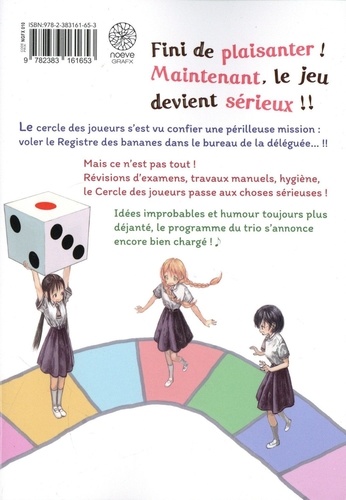 Le cercle des joueurs s'est vu confier une périlleuse mission : voler le Registre des bananes dans le bureau de la déléguée... !! Mais ce n'est pas tout ! Révisions d'examens, travaux manuels, hygiène, le Cercle des joueurs passe aux choses sérieuses ! Idées improbables et humour toujours plus déjanté, le programme du trio s'annonce encore bien chargé !