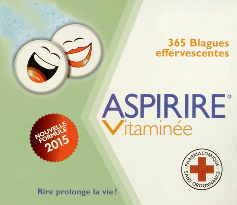 L'ASPIRIRE Vitaminée est un produit d'automédication non remboursé par la Sécurité sociale, préconisé dans les cas de symptômes dépressifs, d'état d'anxiété et de stress, d'apathie, de pessimisme, d'atrophie musculaire prononcée de la mâchoire et des zygomatiques. Thérapie et prophylaxie des carences d'humour dues à une mauvaise humeur irréductible. L'ASPIRIRE Vitaminée peut être consommée sans avis médical, sous forme de 365 petites blagues sécables, pouvant provoquer des crises d'hilarité chez les sujets sensibles. L'absorption de ce "médicmarrant" peut également entraîner des contractions de l'abdomen. A conserver dans un lieu sec à l'abri de la lumière. Ne pas laisser à la portée des enfants. Posologie et mode d'administration : une ASPIRIRE de préférence au lever aide à mieux commencer la journée. Une seule blague apporte la dose de bonne humeur quotidienne nécessaire. Dans certains cas, il est fortement conseillé de dépasser la dose prescrite. Lire attentivement la notice avant l'utilisation.