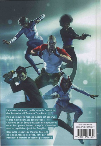 La tension est à son comble entre la Confrérie des Assassins et l'Ordre des Templiers. Mais une nouvelle menace globale est apparue, et elle met en péril les deux factions. Charlotte et son équipe d'Assassins ne pourront éviter leur propre destruction qu'en s'associant avec un mystérieux justicier Templier. Découvrez le nouveau chapitre haletant de la saga Assassin's Creed, écrit par Paknadel & Watters et dessiné par Holder !