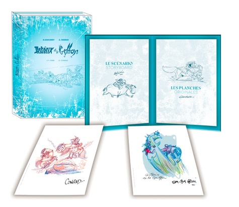 Astérix, Obélix et Idéfix sont de retour pour une 39e aventure. Accompagnés du plus célèbre des druides, ils s'apprêtent à partir pour un long voyage en quête d'une créature étrange et terrifiante. Mi-aigle, mi-lion, énigmatique à souhait, le Griffon sera l'objet de ce grand voyage ! Toujours réalisée par le talentueux duo formé par Jean-Yves Ferri au scénario et Didier Conrad au dessin, nul doute que cette nouvelle aventure proposera une quête épique et semée d'embûches à nos héros à la recherche de cet animal fantastique ! Le duo, toujours à pied d'oeuvre pour imaginer de nouvelles aventures, s'inscrit dans le fabuleux univers créé par René Goscinny et Albert Uderzo. Attention, collector ! Retrouvez l'édition définitive d'Astérix et le Griffon dans un coffret luxueux numéroté.