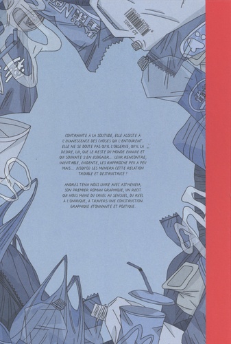 Contrainte à la solitude, elle assiste à l'évanescence des choses qui l'entourent. Elle ne se doute pas qu'il l'observe, qu'il la désire, lui, que le reste du monde ennuie et qui souhaite s'en éloigner... Leur rencontre, inévitable, évidente, les rapproche peu à peu mais... jusqu'où les mènera cette relation trouble et destructrice ? Contrainte à la solitude, elle assiste à l'évanescence des choses qui l'entourent. Elle ne se doute pas qu'il l'observe, qu'il la désire, lui, que le reste du monde ennuie et qui souhaite s'en éloigner... Leur rencontre, inévitable, évidente, les rapproche peu à peu mais... jusqu'où les mènera cette relation trouble et destructrice ? Andrés Tena nous livre avec Astheneia, son premier roman graphique, un récit qui nous mène du cruel au sensuel, du réel à l'onirique, à travers une construction graphique étonnante et poétique.