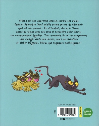 Visite pédagogique aux enfers, atelier tragédie, expédition au fond de l'océan... C'est le programme pédagogique de l'école du mont Olympe, où Athéna et ses camarades apprennent leur métier de futurs dieux et déesses ! Gaïa et Aphrodite sont ses deux super amies, et Cerbère son chiot à trois têtes veille jalousement sur elle. D'autant plus qu'à la différence de ses camarades, Athéna n'est pas certaine d'avoir encore découvert son pouvoir. C'est sur ces entrefaits qu'arrive Osiris, le correspondant égyptien d'Athéna. Mais pas tout seul, puisqu'il est accompagné de sa chatte Bastet... Bref, vous l'avez deviné : ça va swinguer sur l'Olympe ! Il fallait Sibylline, Frédéric Bagères et Marie Voyelle pour inventer avec autant d'humour et de bonne humeur l'enfance de leurs dieux et déesses préférés. La mythologie telle que vous ne l'avez jamais lue !