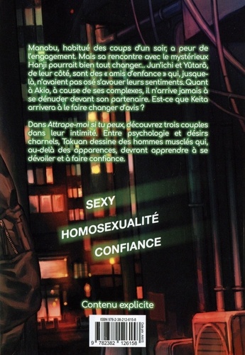 Dans Attrape-moi si tu peux, découvrez trois couples dans leur intimité. Entre psychologie et désirs charnels, Takuan dessine des hommes musclés qui, au-delà des apparences, devront apprendre à se dévoiler et à faire confiance. Manabu, habitué des coups d'un soir, a peur de l'engagement. Mais sa rencontre avec le mystérieux Hanji pourrait bien tout changer... Jun'ichi et Yûtarô, de leur côté, sont des " amis d'enfance " qui, jusque-là, n'avaient pas osé s'avouer leurs sentiments. Quant à Akio, à cause de ses complexes, il n'arrive jamais à se dénuder devant son partenaire. Est-ce que Keita arrivera à le faire changer d'avis ?