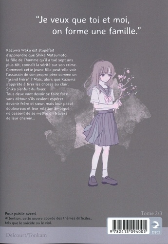 Kazuma Waku est stupéfait d'apprendre que Shika Matsumoto, la fille de l'homme qu'il a tué sept ans plus tôt, connait la vérité sur son crime. Comment cette jeune fille peut-elle voir l'assassin de son propre père comme un "grand frère" ? Mais, alors que Kazuma s'apprête à tirer les choses au clair, Shika s'enfuit du foyer. Tous deux vont devoir se faire face sans détour s'ils veulent espérer devenir frère et soeur, mais leur passé douloureux et leur relation ambiguë ne cessent de se mettre en travers de leur chemin...