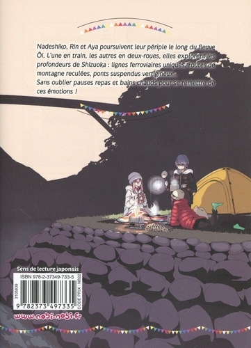 Nadeshiko, Rin et Aya poursuivent leur périple le long du fleuve Ôi. L'une en train, les autres en deux-roues, elles explorent les profondeurs de Shizuoka : lignes ferroviaires uniques, route de montagne reculées, ponts suspendus vertigineux... Sans oublier pauses repas et bains chauds pour se remettre de ces émotions !
